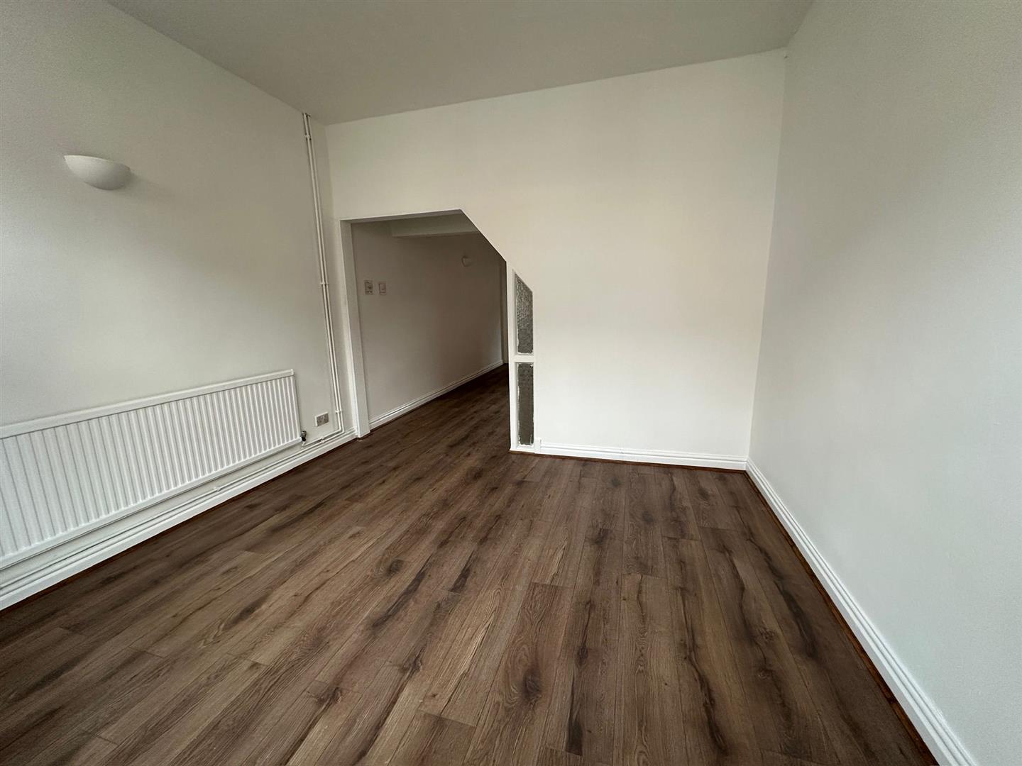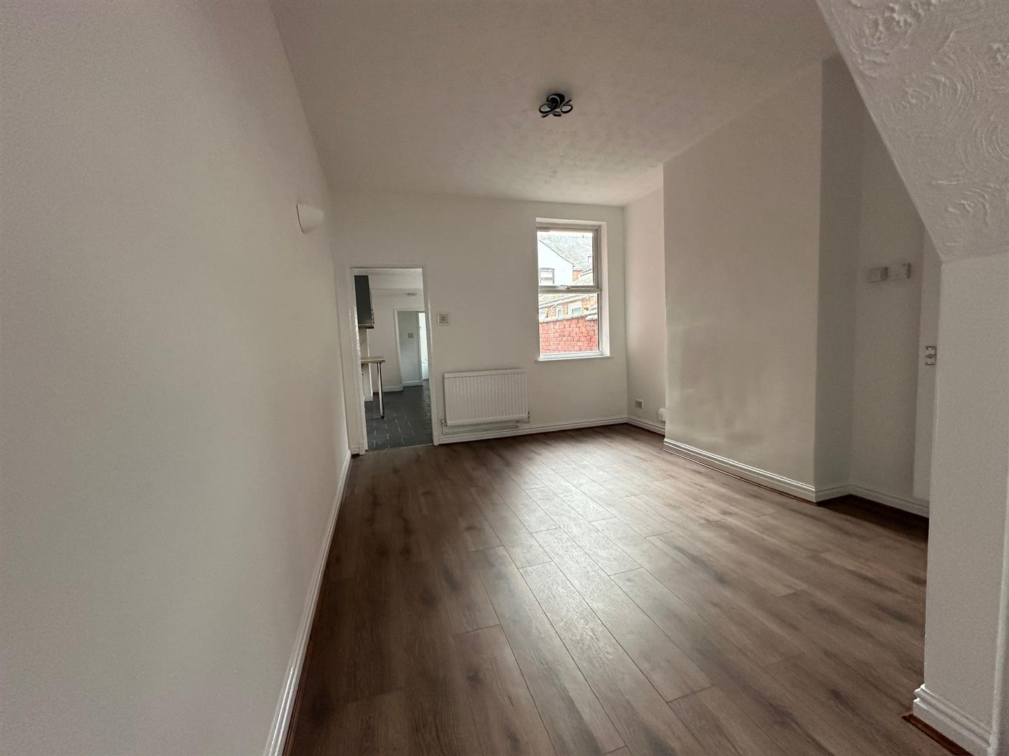 Step inside to discover a large, open plan living and dining area featuring contemporary wood effect flooring and crisp white walls, perfect for relaxing, entertaining, or creating a personalised home environment.